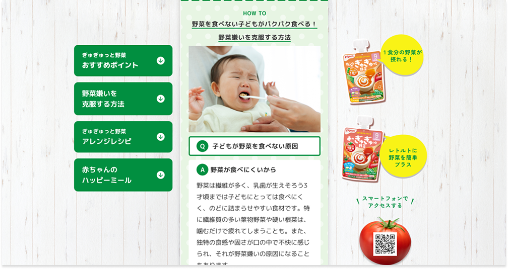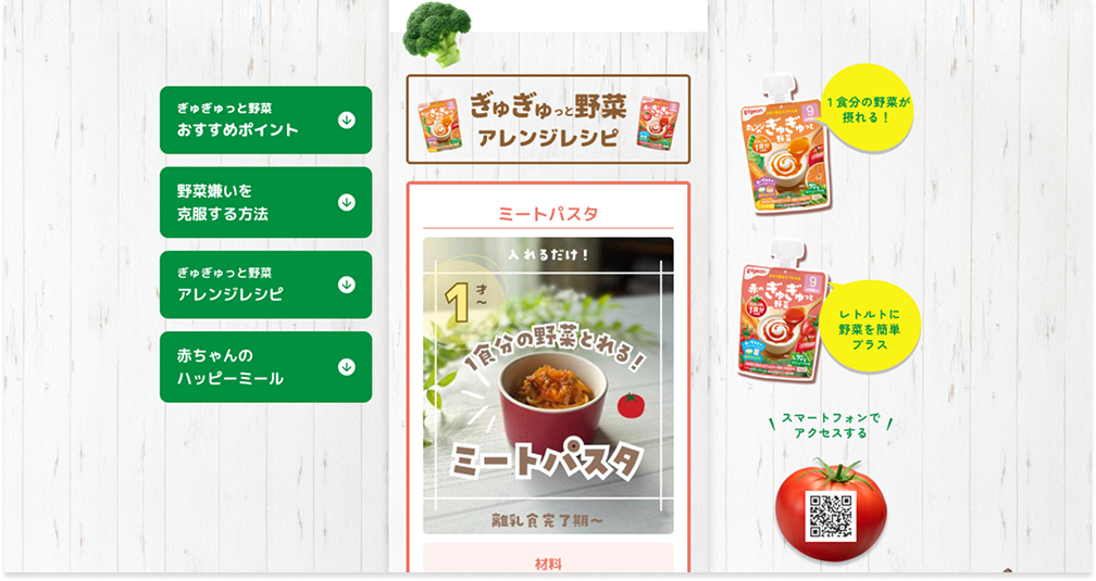 ピジョン様「ぎゅぎゅっと野菜」ページ作成