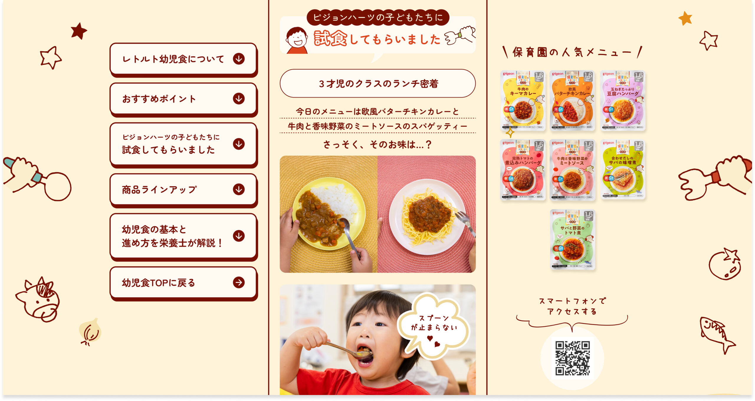 また、ピジョンハーツの子ども達による試食レポートを掲載し、